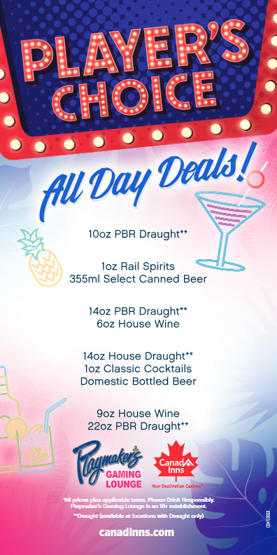 Each Canad Inns Destination Centre features a Playmaker’s location with its own unique feel—all offering a smoke-free environment and full food and beverage service.