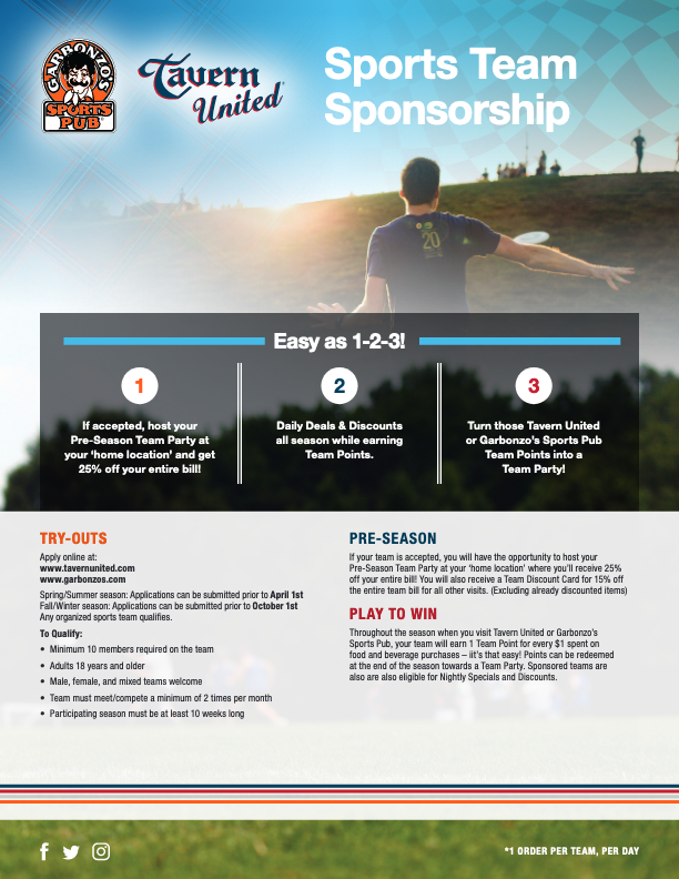Start with 25% off your pre-season team party, enjoy discounts all season long, and earn Team Points toward your next team celebration.