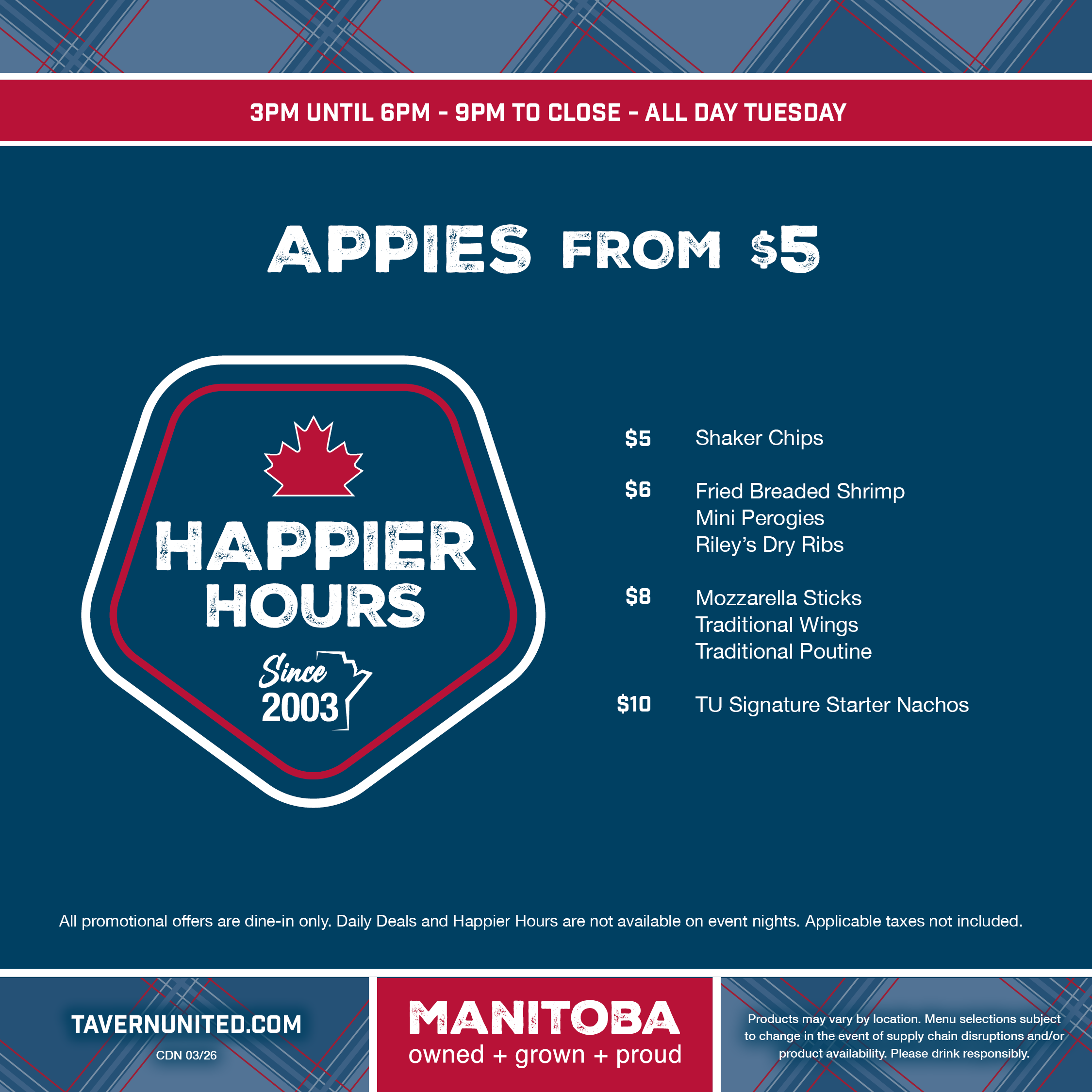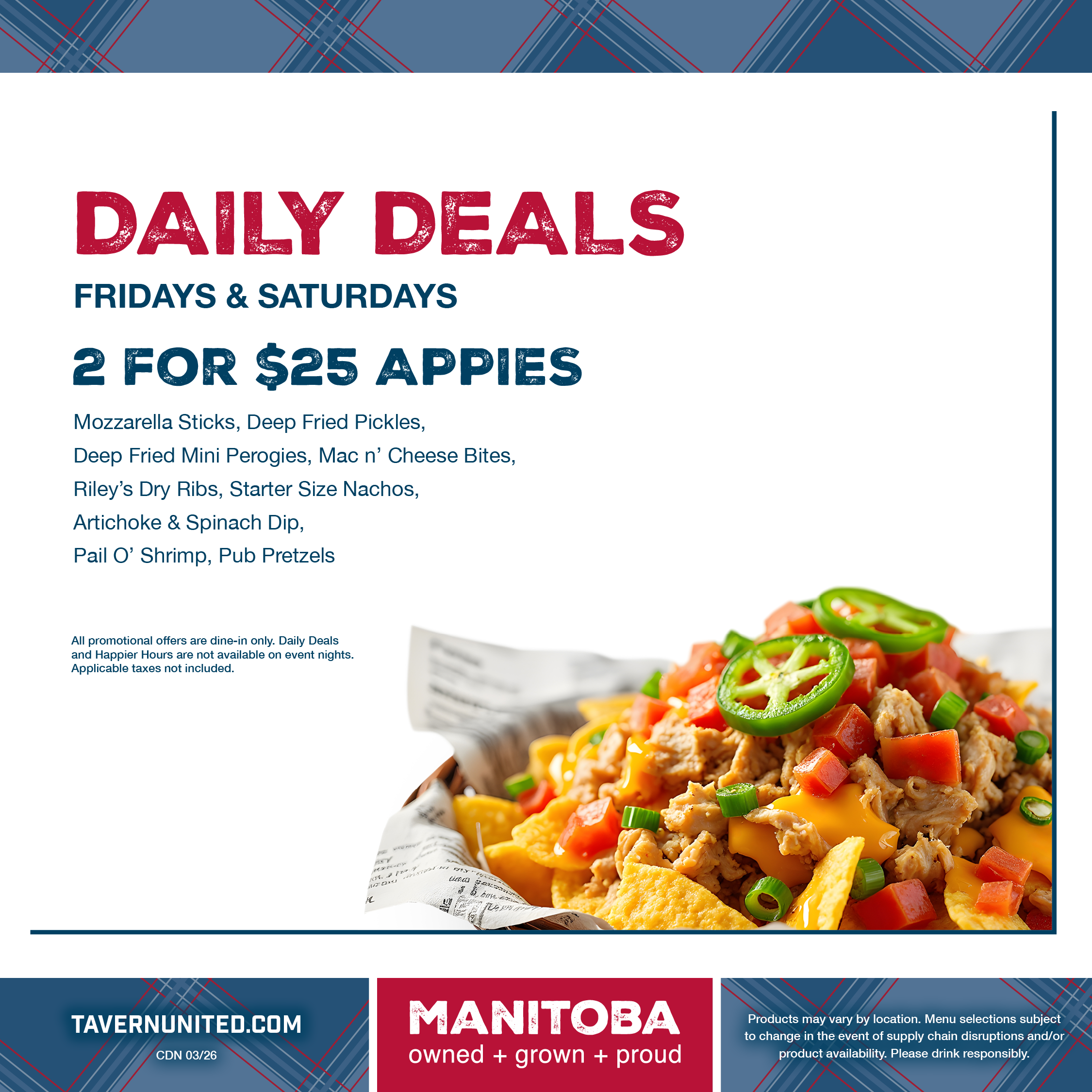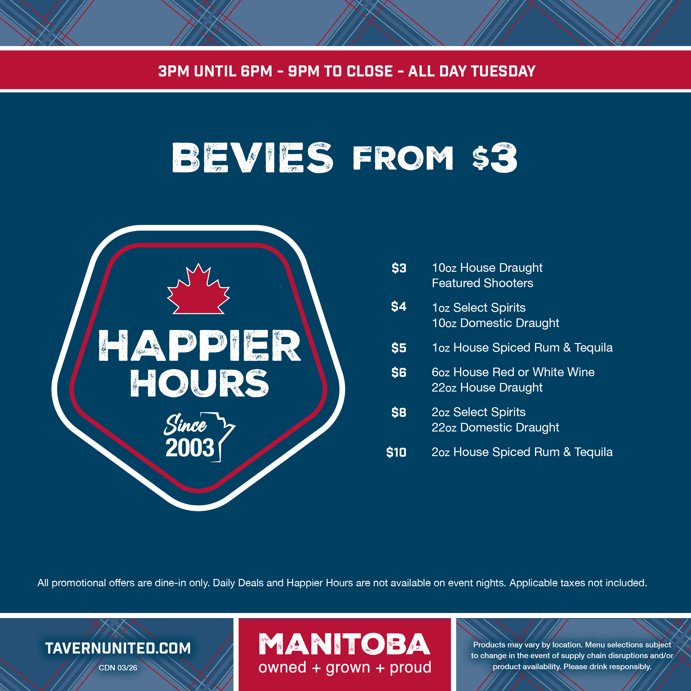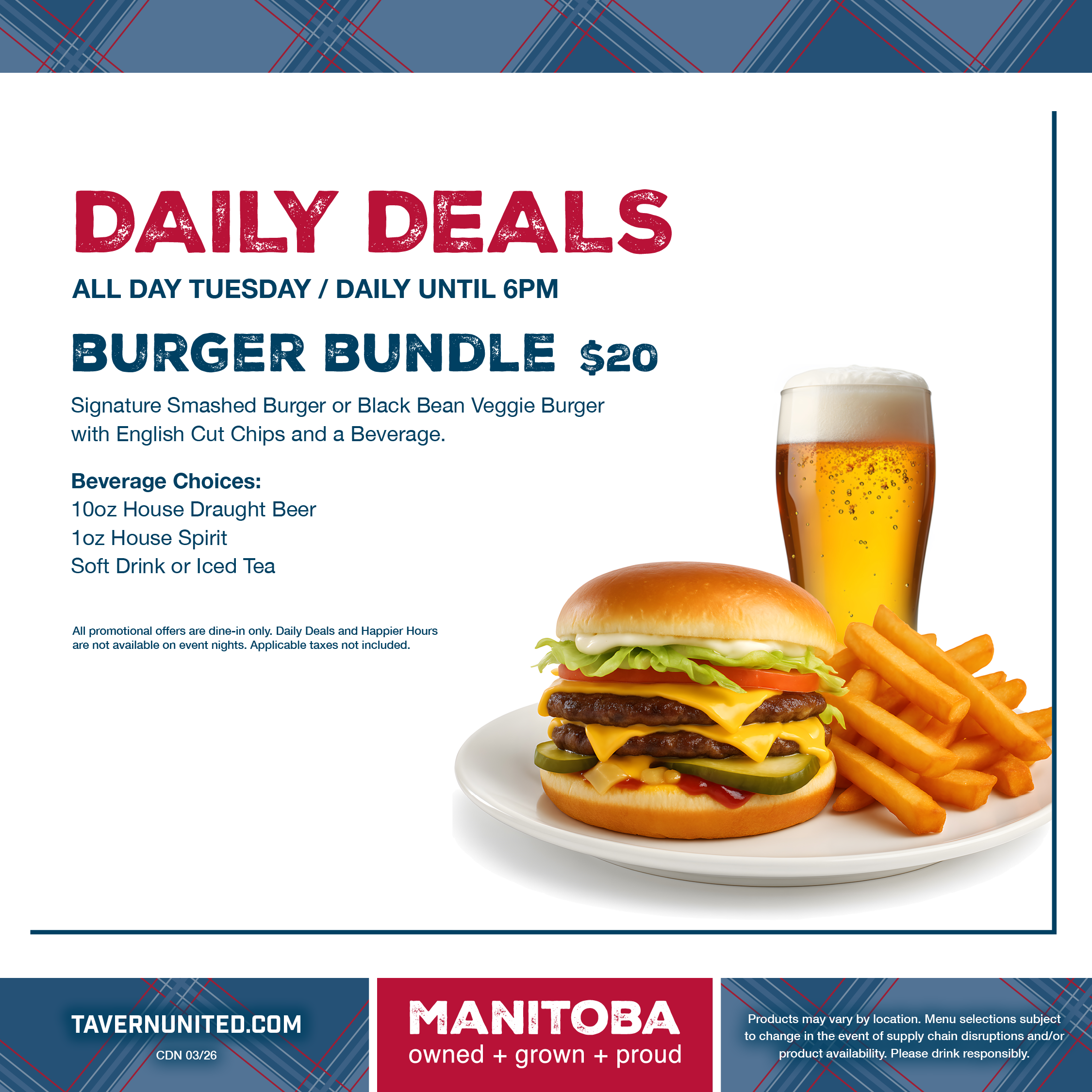 Tavern United is your neighbourhood sports pub—where friends gather for great food, cold drinks, and good times. With a high-energy atmosphere, big screens, and something always happening, it’s the perfect place to catch the game, meet up, and stay awhile.