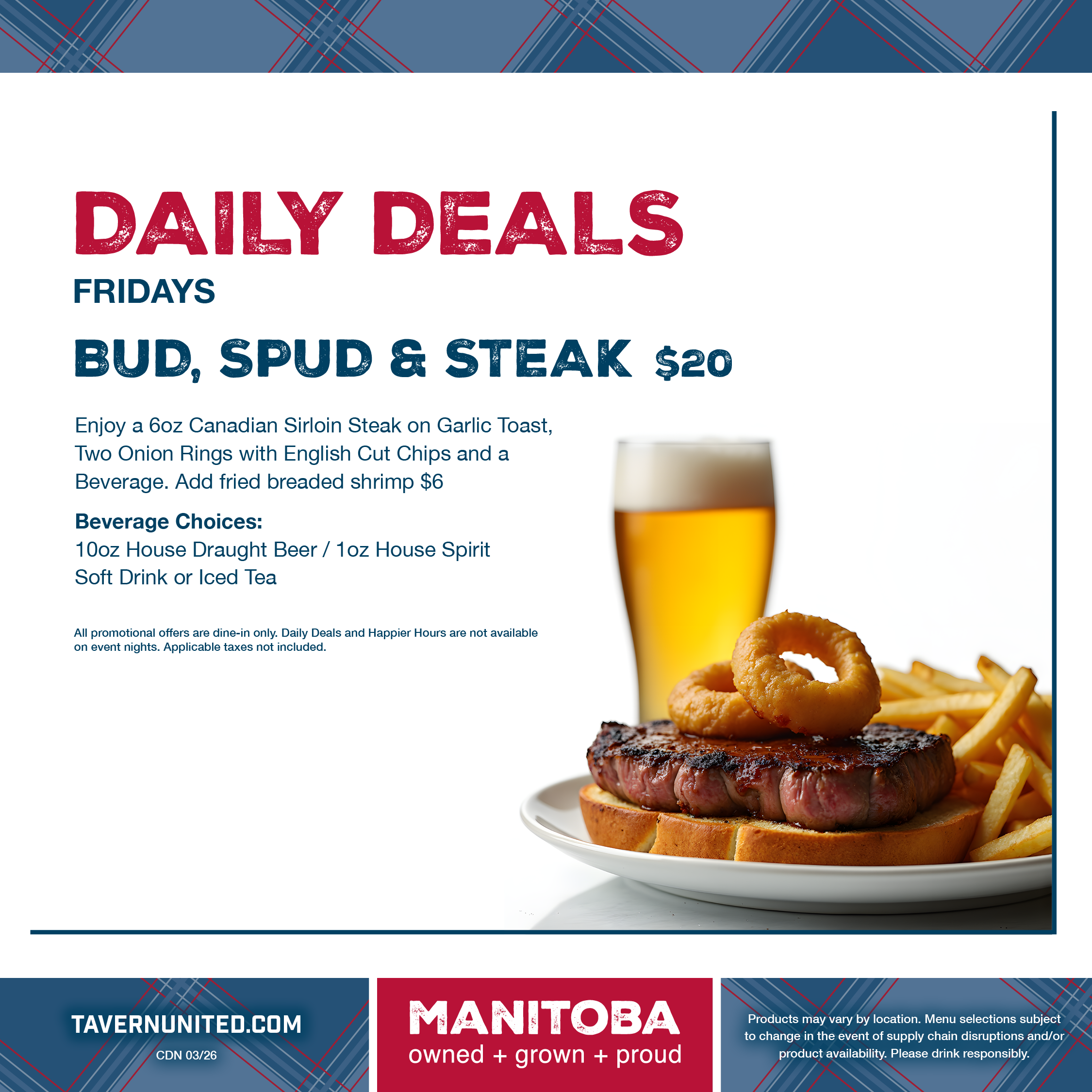 Tavern United guests can now order ONLINE DIRECT from any Manitoba Tavern United location